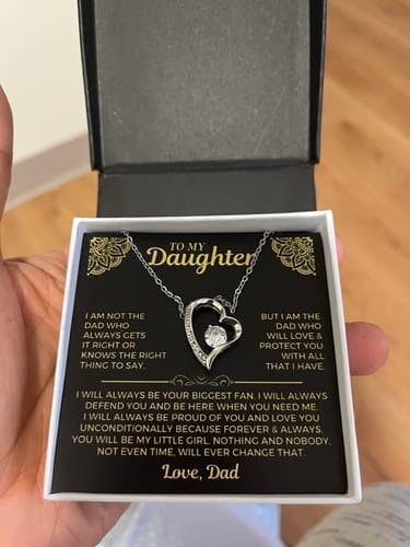 "TO MY DAUGHTER - I am not the Dad who always gets it right or knows the right thing to say, but I am the Dad who will love & protect you with all that I have. I will always be your biggest fan, I will always defend you and be here when you need me, I will always be proud of you and love you unconditionally because forever & always, you will be my little girl. Nothing and nobody, not even time will ever change that. LOVE, DAD"